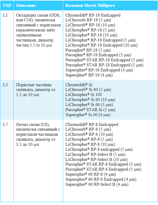 - L колонки для ВЭЖХ по классификации Фармакопеи США (USP):
