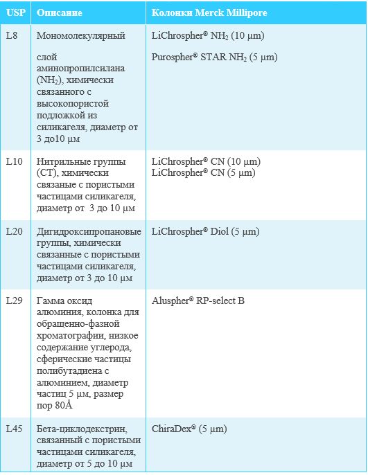 - L колонки для ВЭЖХ по классификации Фармакопеи США (USP):